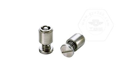 手緊螺釘?shù)膲恒T套具有壓花齒,壓裝于于機(jī)箱或薄鈑孔內(nèi)(:薄板的鉆孔徑相對(duì)應(yīng)彈簧螺釘?shù)膲糊X徑有一定要求的,形成一個(gè)外露的彈簧螺釘,用手?jǐn)Q另一端(即手?jǐn)Q端).因其里面固定有彈簧,螺釘相對(duì)于薄板的另一端來(lái)回進(jìn)出。
