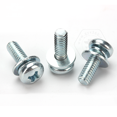 • 工業(yè)熊碳鋼4.8級環(huán)保藍白鋅封閉(24/72h)十字槽盤頭帶平彈墊組合螺釘GB9074.4N